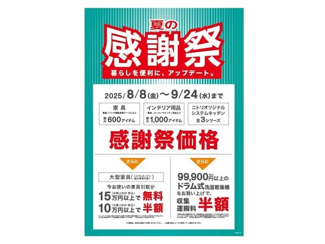 ニトリは2025年8月8日(金)から9月24日(水)まで、「ニトリ夏の感謝祭」を開催いたします。