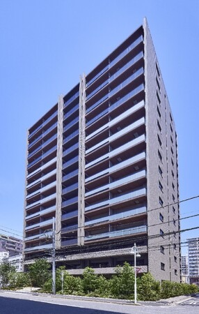 建物外観は、ダブルマリオンや上層階へ上がるほど透明度が高いガラス手すりを採用し、外観全体が空に向けて伸びてゆくような印象を創出しています。エントランスラウンジは、柔らかな光を放つ「光壁」と窓面から見える緑の潤いにより、上質な空間づくりをしています。
