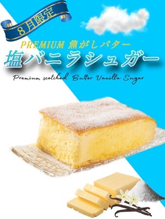 新鮮な卵黄と牛乳と厳選した小麦粉をふんだんに使い、それに卵白で作った泡のようなメレンゲを混ぜて、じっくり焼き上げることで、”ふわぁ しゅぁ”食感を実現した定番商品のプレミアムプレーンに、バターの乳風味をギュッと凝縮し、濃厚な甘い香りが印象的な焦がしバターをあしらいました。さらに、その上に、ほんのり甘いバニラシュガーと瀬戸内の海塩で特別に配合したシュガーをふんだんに振りかけ、高級感あふれる香りを楽しむことが出来ます。