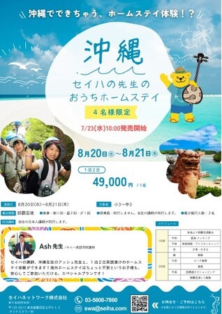 セイハネットワーク株式会社(本社:福岡県福岡市、代表取締役 坂口 正美)は、2025年8月20日(水)~21日(木)の1泊2日で、「国内ホームステイ体験 in 沖縄」を開催いたします。