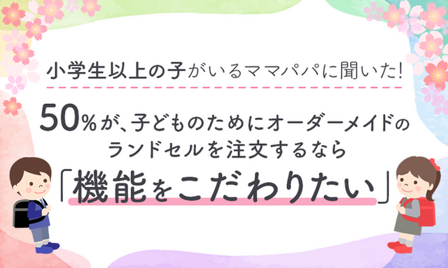 50%の方が、子どものためにオーダーメイドのランドセルを注文するなら「機能をこだわりたい」と回答しています。