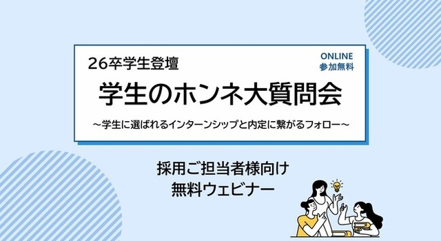 当ウェビナーでは、26卒予定の就活経験者3名が匿名で登壇し、主にインターンシップに関する企業様からのご質問に対してリアルな本音を語っていただきました。