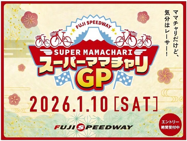 富士スピードウェイでは、2026年1月10日(土)に開催する国内最大級のママチャリによるレースイベント、「スーパーママチャリグランプリ」の参加エントリーを2025年8月13日(水)より開始いたします。