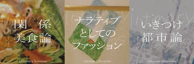 YESの第2期となる「intimacy lessons」。「ナラティブとしてのファッション」「関係美食論」「いきつけ都市論」の3つのクラスにより構成され、それぞれの探求やクリエーションの成果は小冊子にまとめていく予定です。