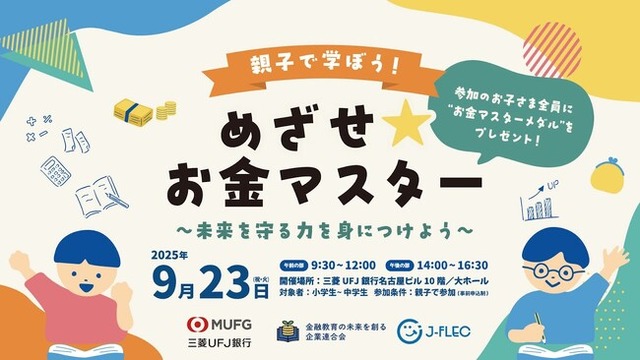 国内最大級(※1)の家計診断・相談サービス『オカネコ』や、金融教育サービス『OKANE-KOllege』を運営する、株式会社400F(フォーハンドレッド・エフ、本社:東京都中央区、代表取締役社長CEO:中村 仁、以下「当社」)が参画する「金融教育の未来を創る企業連合会(以下、当連合会)」は、2025年9月23日(祝・火)に三菱UFJ銀行との初のコラボレーションイベント「親子で学ぼう!めざせ★お金マスター~未来を守る力を身につけよう~」を名古屋で開催します。