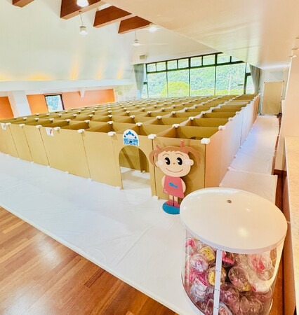 兵庫県姫路市の「かまぼこ工房 夢鮮館」2階に、身長120cmまでの小学生以下のお子様限定で楽しめる“巨大迷路”が出現しました。自分の足で進み、ゴールを目指すシンプルな楽しさに加え、子どもたちが夢中になれる仕掛けを多数ご用意しています。