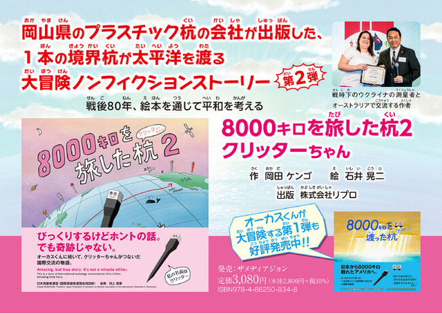 再生プラスチックを原料に「杭」などの製造・販売を行う株式会社リプロ(本社:岡山市南区、代表:岡田ケンゴ)は2025年8月7日(木)、絵本『8000キロを旅した杭2 クリッターちゃん』(英題:Little Critter’s 5000 miles Adventure 2)を発行しました(発売元:株式会社ザメディアジョン/本社:広島市西区)。