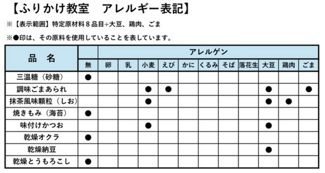 ・使用するふりかけの材料一覧を事前にご確認ください。