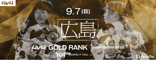 Now Do株式会社(所在地:東京都新宿区、代表取締役社長:本田圭佑)が運営する育成年代向け4人制サッカー大会「4v4」は、ゴールドランク大会「GOLD RANK IN HIROSHIMA」を、2025年9月7日(日)に広島市西区・観音新町運動広場にて開催することをお知らせいたします。