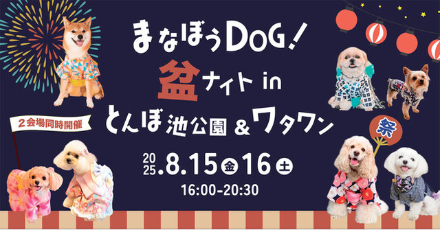 2025年8月15日(金)・16日(土)の2日間、大阪・岸和田市の複合型エンターテインメントモール「WHATAWON(ワタワン)」にて、「とんぼ池公園」と「ワタワン」を舞台に、わんこ好き必見の夏祭りイベント【まなぼうDOG!盆ナイト in とんぼ池公園&ワタワン】を開催します。ワンコマルシェや浴衣グランプリ、豪華景品が当たるスタンプラリーなど、愛犬と一緒に楽しめるコンテンツが盛りだくさん!