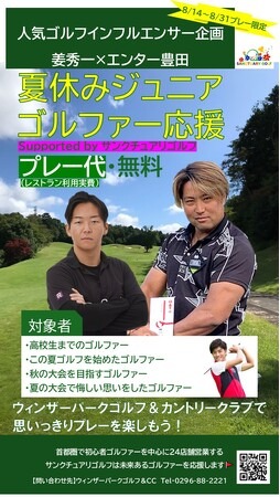 ゴルフ系YouTuberとして高い人気を誇る「エンター豊田」と「姜秀一」が、夏休み期間中次世代を担うジュニアゴルファーを応援する特別企画をスタートします。