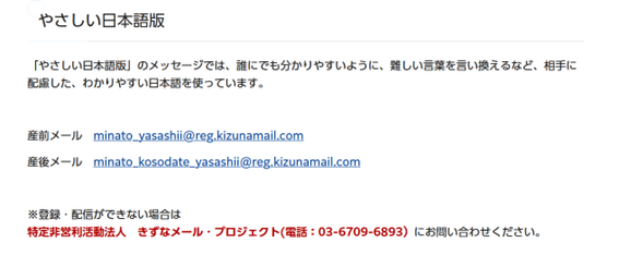 ■港区「港区出産・子育て応援メール やさしい日本語版」 紹介ページ