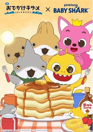 またそれぞれのスタジオが描き下ろしたコラボビジュアル2種をお届け。ピンクフォンカンパニーが描き下ろした、ムービーのコンセプトと合わせたビジュアルや、ENGI が描き下ろした、子ザメちゃんの映画に出てくるパンケーキをみんなで囲む姿も。