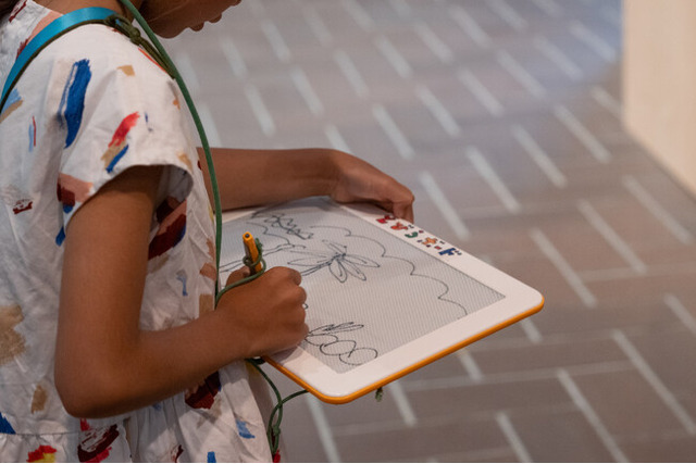 消したり書いたり自由自在な「とびらボード」で自由に描いて、作品にもっと近づこう!