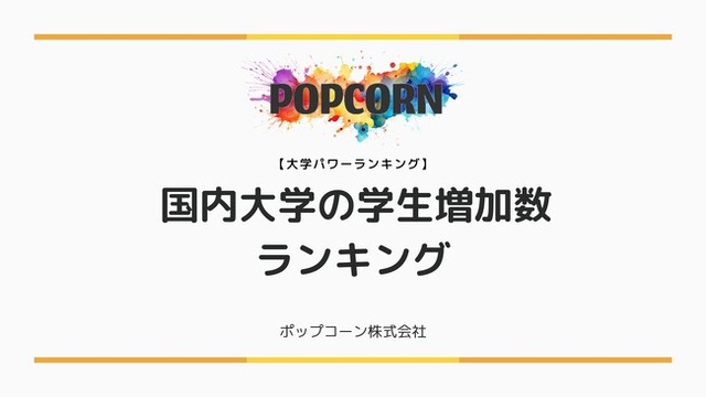 ポップコーン株式会社(本社:東京都渋谷区千駄ヶ谷5-21-5 601、代表取締役:大澤 陽平、URL:https://ppcn.co.jp/)は、2025年8月15日(金)、メディア「Power Ranking」にて『国内大学の学生数増加ランキング』を公開いたしました。