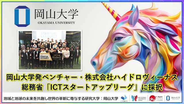 国立大学法人岡山大学(本部:岡山市北区、学長:那須保友)の岡山大学発ベンチャー・株式会社ハイドロヴィーナスが2025年7月11日、東京で開催された「UPDATE EARTH シンポジウム Summer」における研究テーマ「治水DXシステム」において、総務省のスタートアップ支援プログラム「ICTスタートアップリーグ」※に採択されました。