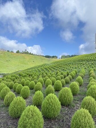 [画像1: https://prcdn.freetls.fastly.net/release_image/105564/17/105564-17-81e3436ccdc06f15ae13026e03a7b4e7-2194x2925.jpg?width=536&quality=85%2C75&format=jpeg&auto=webp&fit=bounds&bg-color=fff ]ふんわりと丸いフォルムが可愛らしい「グリーンコキア」は、夏は鮮やかなライトグリーン、秋には真紅へと色づく人気の高原植物。現在は瑞々しいグリーンが風にそよぎ、爽やかな涼感を演出しています。