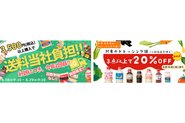 [画像1: https://prcdn.freetls.fastly.net/release_image/115470/221/115470-221-f0065eb9152fe70e3bb72f290fc9a8a8-860x400.png?width=536&quality=85%2C75&format=jpeg&auto=webp&fit=bounds&bg-color=fff ]好評につき今年2回目の開催。本日8月18日(月)から8月29日(金)まで全商品の中から税込3,500円以上のお買い上げで送料が当社負担になるお得なキャンペーンです。