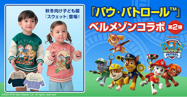 株式会社千趣会(本社:大阪市 代表取締役社長:鈴木聡 以下千趣会)の通販事業ベルメゾンは、テレビ東京系で放送中の大人気アニメ『パウ・パトロール』とコラボレーションした子ども服「ラインリブ裏毛スウェットシャツ」(税込:2,790円、全2色)、「ニットキルト切替えスウェットシャツ」(税込:2,590円、全2色)の2アイテムを2025年8月18日(月)よりベルメゾンネット(https://www.bellemaison.jp/)にて販売開始します。