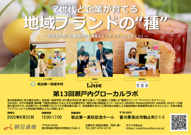 坂出第一高等学校、株式会社ルーヴ、かがわ物産館栗林庵、IPU環太平洋大学と連携し、産学高大が一体となって開発したスイーツ『ハイスクールマフィン』の事例をお披露目いたします。