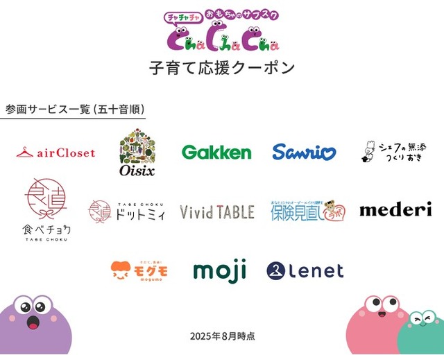 知育玩具のレンタルサブスクリプションサービス「ChaChaCha」を展開する自立の株式会社(本社:千葉県習志野市、代表取締役:川崎孝介)は2025年8月、「Cha Cha Cha」を利用する既存のお客様に向けて、お得なクーポンを配布する取り組みを開始いたします。