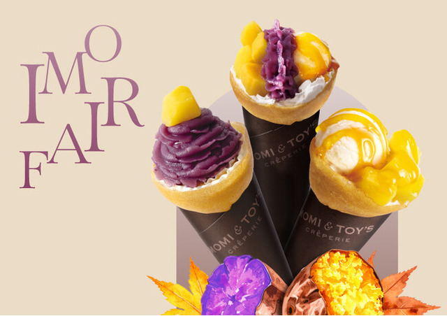 株式会社 JFLA ホールディングス(本社:東京都中央区、代表取締役社長:檜垣周作)の子会社である株式会社アルテゴ(本社:東京都中央区、代表取締役社長:檜垣周作)が運営するクレープブランド「MOMI&TOY'S(モミアンドトイズ)」は、秋の味覚「さつまいも」を贅沢に使用した、3種類の秋限定お芋たっぷりクレープを期間限定で販売致します。