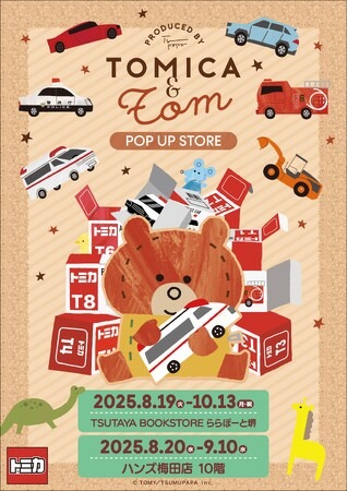 株式会社クレイジーバンプは2025年8月19日(火) ~10月13日(月・祝)までTSUTAYA BOOKSTORE ららぽーと堺にて、8月20日(水) ~9月10日(水)までハンズ梅田店にて、計21種類の新商品の『トミカとトム』POP UP STOREを行います。