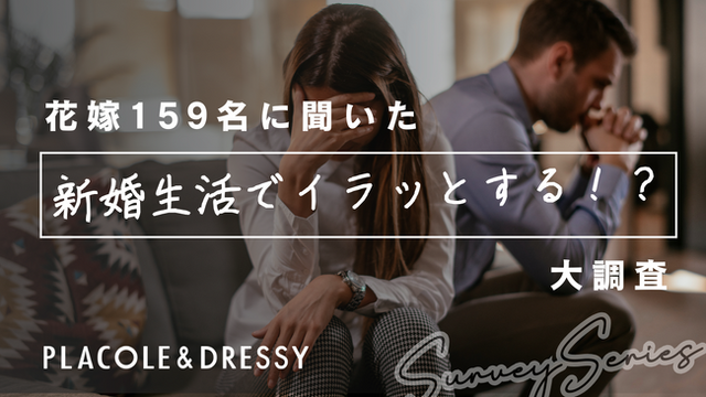 花嫁アプリ「PLACOLE & DRESSY」を運営する、冒険社プラコレ(本社:神奈川県鎌倉市、代表取締役CEO:武藤功樹)は、20代30代の花嫁インスタユーザー 159名を対象に新婚生活でイラッとすることってある?!」に関する実態調査を実施いたしました。
