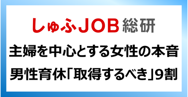 仕事と家庭の両立を希望する主婦・主夫層の実情や本音を探る調査機関『しゅふJOB総研』(運営会社:株式会社ビースタイル ホールディングス 本社:東京都新宿区、代表取締役:三原邦彦)は『男性の育休取得』をテーマに、主婦層を中心とする就労志向の女性にアンケート調査を行いましたので以下にご報告します。(有効回答数:727件)