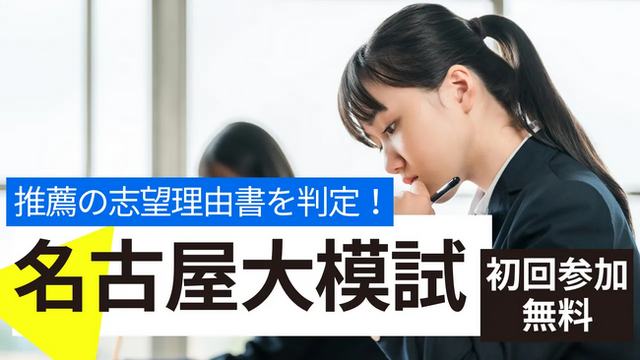 高校生の推薦入試対策を専門に行う ルークス志塾(本社:東京都渋谷区) は、名古屋大学の推薦入試を目指す受験生を対象にした特別企画 「名古屋大学模試」 を名駅校・千種校にて開催いたします。