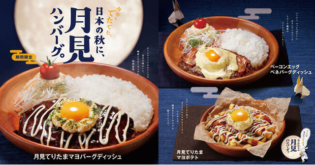 今年の秋もびっくりドンキーから秋空に浮かぶまんまるお月様のようなたまごがのった2種のバーグディッシュと、1種のサイドメニューが期間限定で登場します。