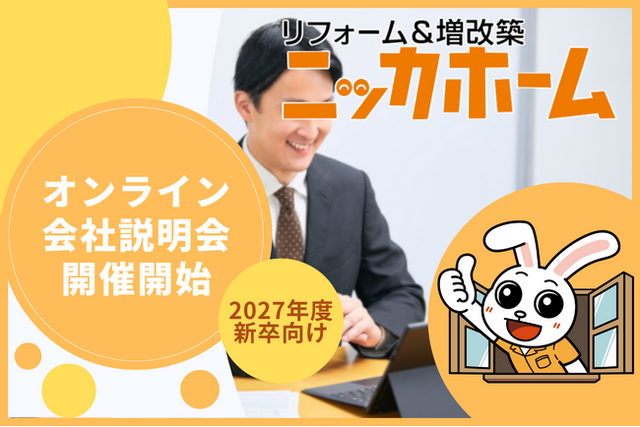 住宅リフォーム事業を展開する ニッカホーム株式会社(本社:愛知県名古屋市緑区篭山、代表取締役社長:西田裕久、以下 ニッカホーム)は、2025年8月より27年度新卒を対象としたオンライン会社説明会を開始しました。