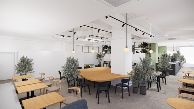 立地は、JR京浜東北線・北浦和駅から徒歩3分に位置する本社ビル1階です。四季折々の自然が楽しめる地域の憩いの場・北浦和公園に隣接していることから、店内は、木の温もりと自然光、植物の緑が溶け合う北欧モダンな空間に作りあげました。社員食堂を兼ねていることから、座席のゾーニングにも工夫を凝らし、「ひとり時間」と「誰かと過ごす時間」の両立が可能な空間づくりとなっています(設計施工:コクヨ株式会社)。また、食事メニューを担当するのは、ホテルで長年の経験を持つ料理長です。旬の野菜を使い、社員と地域の皆さまの健康に配慮した食事で日常を彩ります。さらに、カフェの名前にもあるコーヒーは、オランダの老舗「Douwe Egberts」を採用しました。バリスタ経験豊富な店長が淹れる本格的なヨーロッパスタイルのコーヒーを是非、お楽しみください。