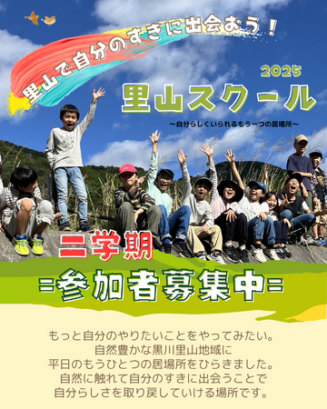 「里山スクール」では、一緒に過ごしてみたい小学生・中学生を募集しています。自然のなかで、自分のペースでのびのびと過ごしてみませんか?