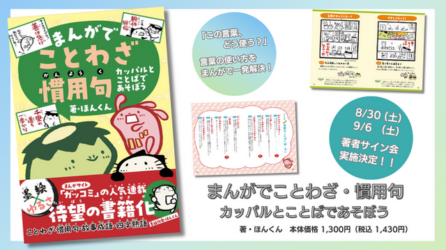 『まんがでことわざ・慣用句』の発売を記念して、書籍の購入者を対象に、著者ほんくんさんのサイン会を実施します。●開催場所:三省堂書店池袋本店 別館地下1階Aゾーン