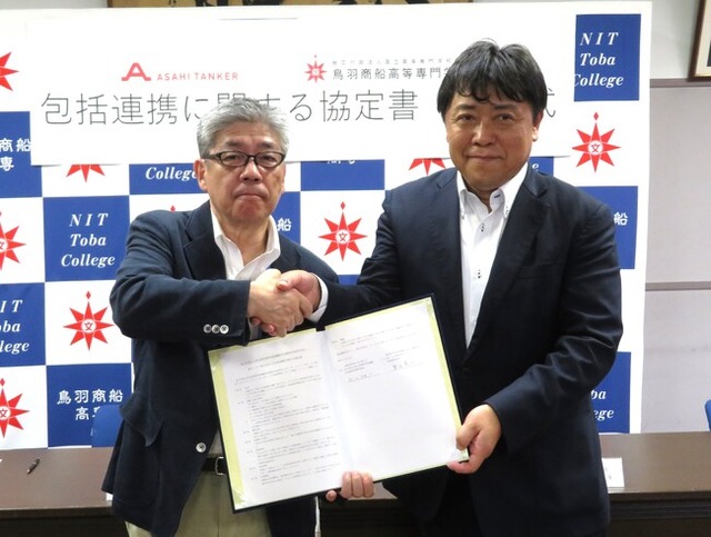 鳥羽商船高等専門学校(三重県鳥羽市、校長:古山雄一、以下「鳥羽商船高専」)は、高度な知識と高い技術力を兼ね備えた海技士の育成を目的に、令和7年7月25日(金)、旭タンカー株式会社(本社:東京都千代田区、代表取締役社長:春山茂一)と包括連携協定を締結しました。