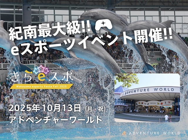 アドベンチャーワールド(和歌山県白浜町、運営:株式会社アワーズ)は、2025年10月13日(月・祝)、パークを舞台に初めて開催される『和歌山県eスポーツフェスタ「きら☆スポ」Fall 2025』に協力いたします。