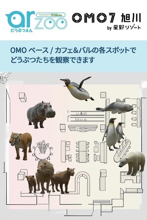 『ARどうぶつえん』は、STARIUMが2024年6月より「OMO7旭川 by 星野リゾート」のOMOベースおよびOMOカフェ&バルで実施し、多くの来場者に好評を博した体験型イベントです。 今回STARIUM(スタリウム)は、SoVeC(ソベック)株式会社と共同で、同社のロケーションベースARアプリ「XR CHANNEL」上に旭山動物園監修の動物たちのコンテンツを実装し展開します。 さらに、STARIUMはSoVeCの高精度のデジタルツイン技術の活用により、「OMO7旭川 by 星野リゾート」の空間と融合した表現へ進化させ、旭山動物園監修のもと、ペンギン、ゴマフアザラシ、カバ、トラ、ライオン、ホッキョクグマといった動物たちが、まるでその場に現れたかのような没入感を来場者が楽しめるよう演出しています。[画像1: https://prcdn.freetls.fastly.net/release_image/149893/8/149893-8-596dad962c8d12f2fa5dd3a5fa786163-1080x1622.jpg?width=536&quality=85%2C75&format=jpeg&auto=webp&fit=bounds&bg-color=fff ]