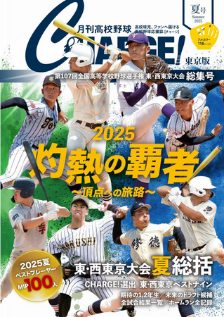 【月刊高校野球CHARGE!第107回全国高等学校野球選手権 東・西東京大会総集号】が全国書店※1、公式サイト(https://monthly-charge.com/2025_夏総集号東京版/)、Amazon、ASA※1、セブンイレブン※1で9月2日に発売 ※1 一部を除く
