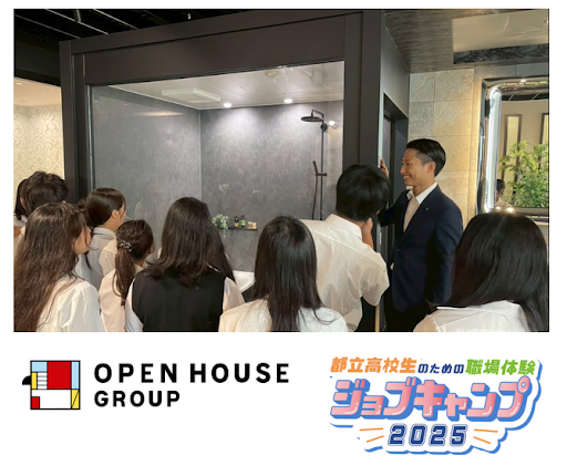 株式会社オープンハウスグループ(本社 東京都千代田区、代表取締役社長 荒井正昭、以下「当社」)は、東京都教育庁が主催する都立高校生向け職場体験プログラム「ジョブキャンプ2025」に参画し、2025年7月15日と16日の2日間、当社のグループ会社である株式会社オープンハウス・ディベロップメントにおいて、都立高校生20名を受け入れ、ショールームの見学を始めとする職場体験会を実施しました。
