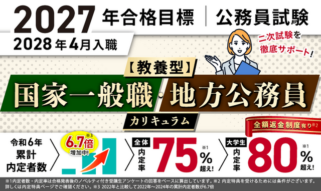 株式会社アガルート(本社:東京都新宿区、代表取締役:岩崎 北斗、以下「アガルート」)が運営する「アガルートアカデミー」は、公務員試験【2027年合格目標】【教養型】国家一般職・地方公務員カリキュラム(フル・ライト)(大卒)をリリースいたしました。