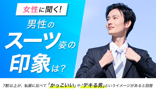 7割以上の女性が、男性のスーツ姿は私服に比べて「かっこいい」や「デキる男」というイメージがあると回答しています。