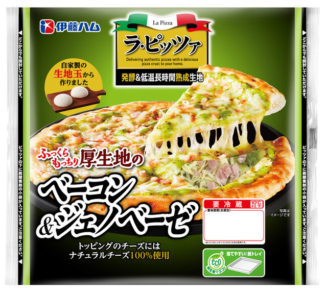 伊藤ハム株式会社は、こだわりの発酵&低温長時間熟成生地の「ラ・ピッツァ」シリーズから、バジルの風味が特徴的で女性からの人気も高い「ジェノベーゼ」を発売します。