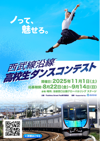 本コンテストは、西武線沿線の高校生たちが仲間とともに挑戦し、自らの表現を磨きあげる舞台です。8月22日(金)から9月14日(日)までの動画審査で選ばれた6チームが、11月1日(土)のファイナルステージで熱いダンスを披露します。