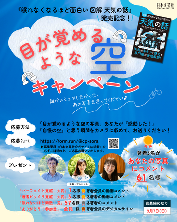 【概要】『眠れなくなるほど面白い 図解 天気の話』新刊発売を記念し、「目が覚めるような空」の写真を募集します!