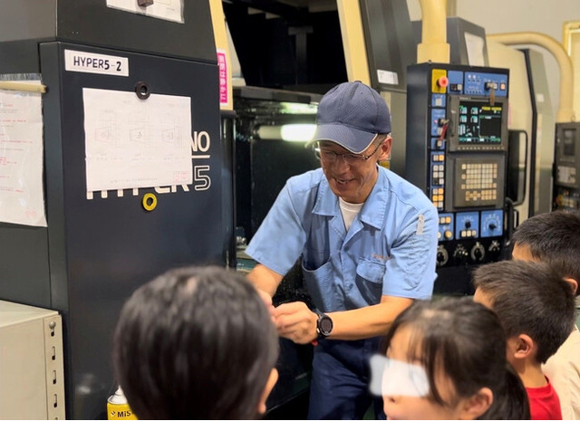 小牧市のダイキ精工で工場見学を体験する小学生たち