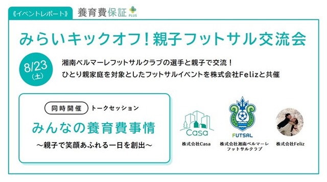 株式会社Casa(本社:東京都新宿区、代表取締役社長:宮地正剛)は、ひとり親支援団体である株式会社Feliz、日本フットサルリーグ(Fリーグ)で活動する株式会社湘南ベルマーレフットサルクラブと共同で、2025年8月23日(土)にひとり親家庭の親子を対象としたサッカーイベントを開催いたしました。