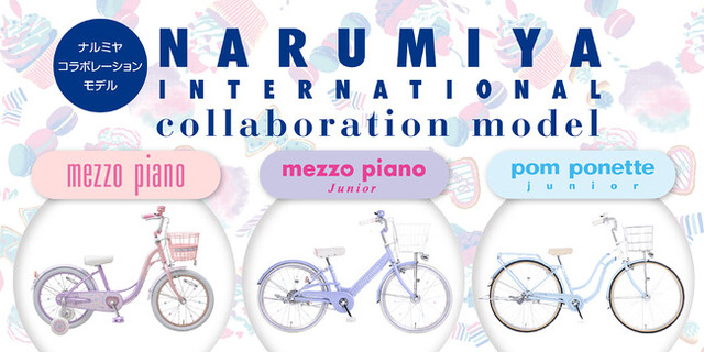 ヘルメットのカラーやデザインは、既に販売しているナルミヤの「mezzo piano junior」や「pom ponette junior」とコラボした自転車に合わせ、それぞれのブランドが持つ世界観のアパレルと合わせたトータルコーディネートが楽しめます。