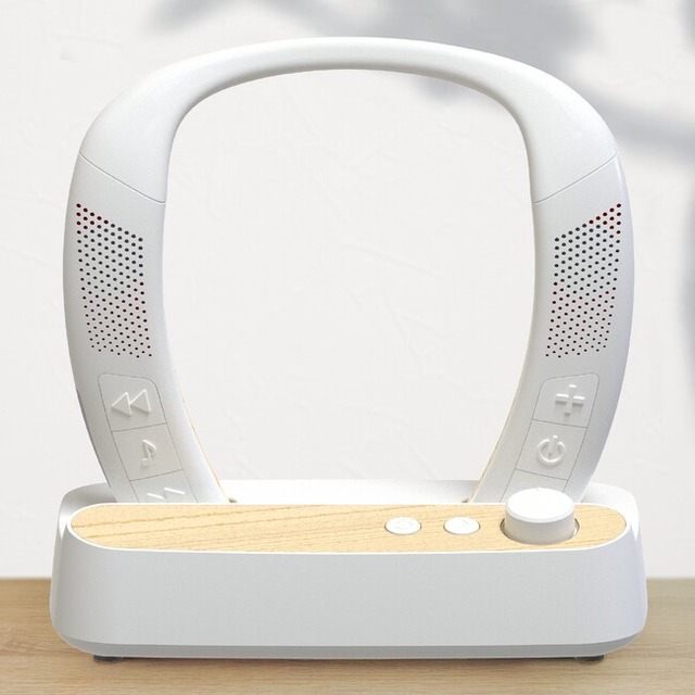 家事などの作業をしながら音楽やテレビ、動画を楽しみたいときなどには⾸に掛けて⾸掛けスピーカーとして、大きな音を出しづらい環境でテレビの音を自分の近くではっきりと聴きたいときなどは、机にスタンドごと置いて手元スピーカーとして、それぞれ活躍します。⽿をふさがないため長時間使用しても疲れにくく、周囲の音も自然に聞こえます。