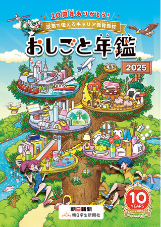『おしごと年鑑』は、朝日新聞社・朝日学生新聞社が発行する小中学生向けのキャリア教育教材です。110社以上の企業団体がさまざまなテーマで世の中を支える仕事についてわかりやすく解説し、子どもたちが楽しく学びながら、将来のビジョンを描く手助けとなっています。2016年から毎年刊行されており、全国の小中学校や教育委員会、子ども食堂、学童、小児病棟などに約7万5千部が寄贈されています。